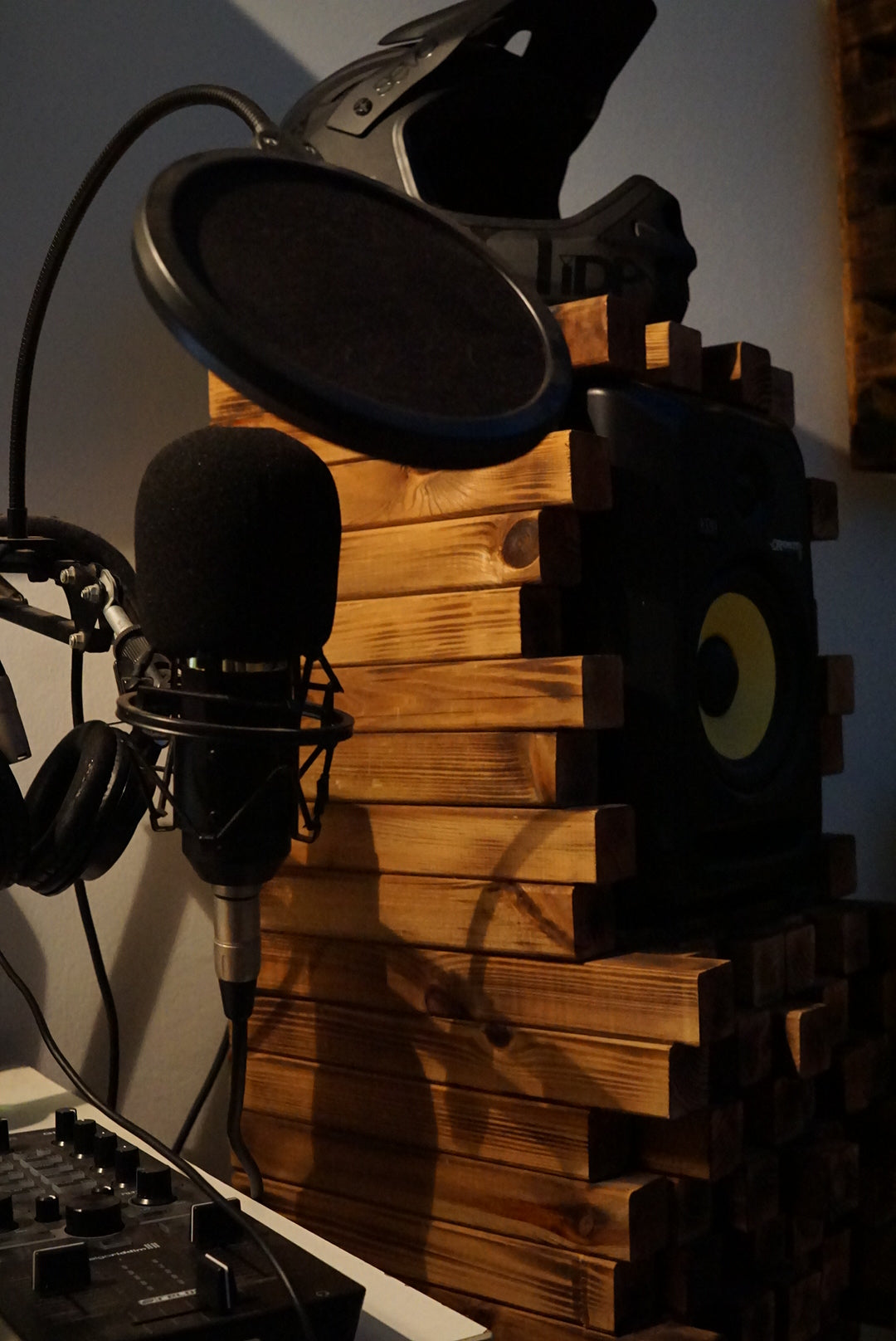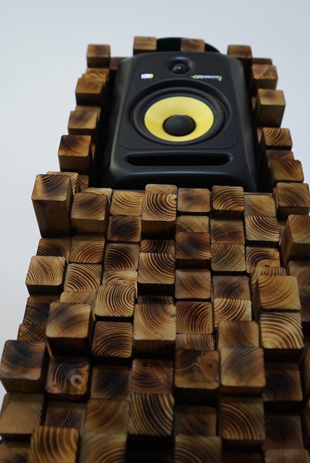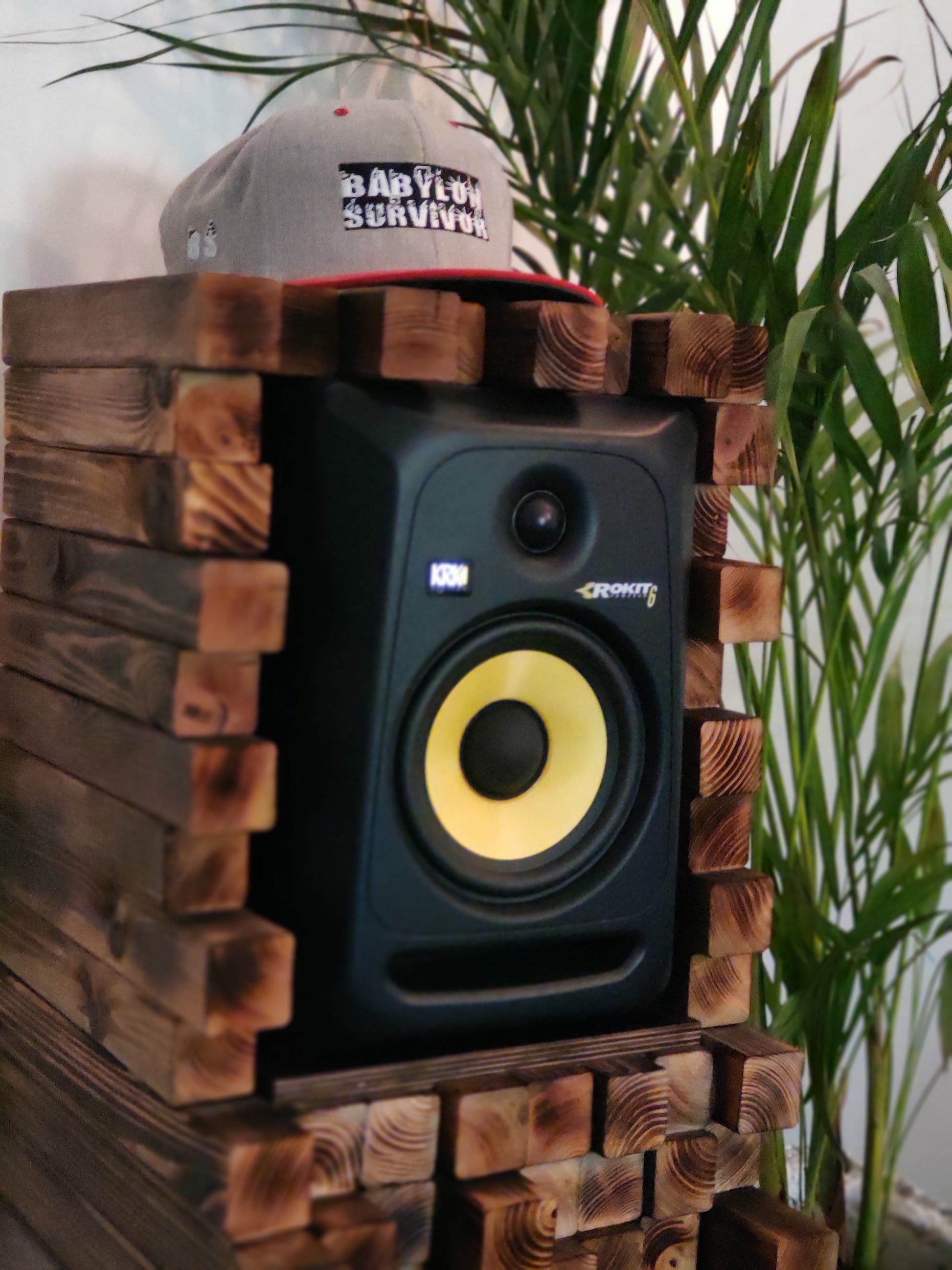 A pair of pinewood stands in an ingenious and modern skyline design. They have excellent mass and strength for the stability of the monitors in your home studio, and of course help considerably in eliminating the sound reflections from the walls.