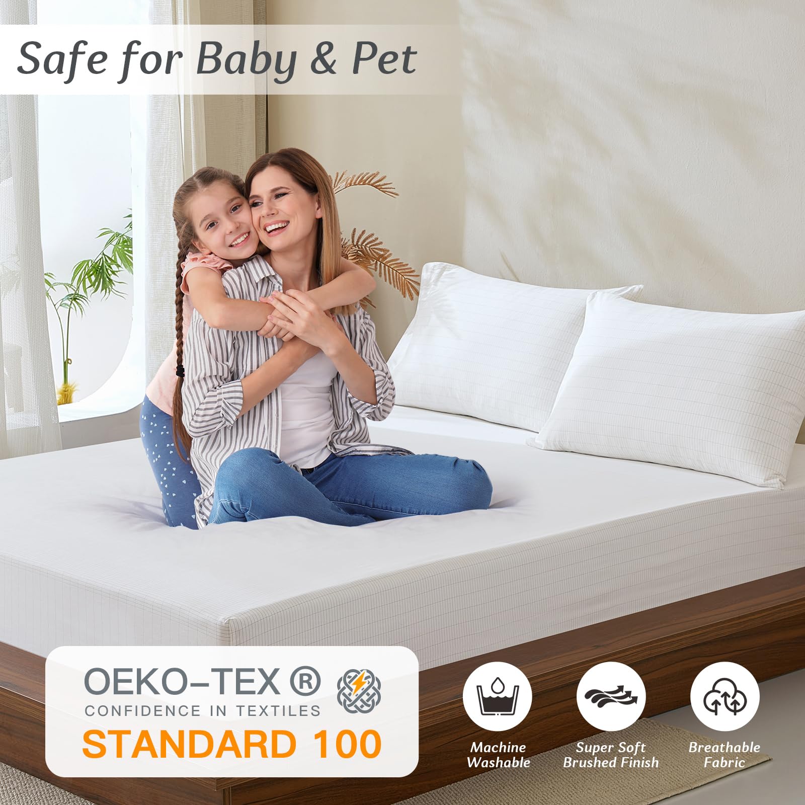 Grounding Sheets Queen, Grounded Bed Sheet 10% Pure Silver Fiber Connected Earth Energy, Fitted Earth Sheets with Grounding Tester-White